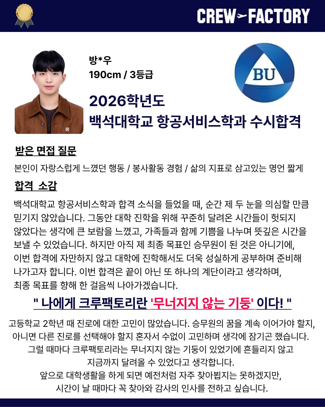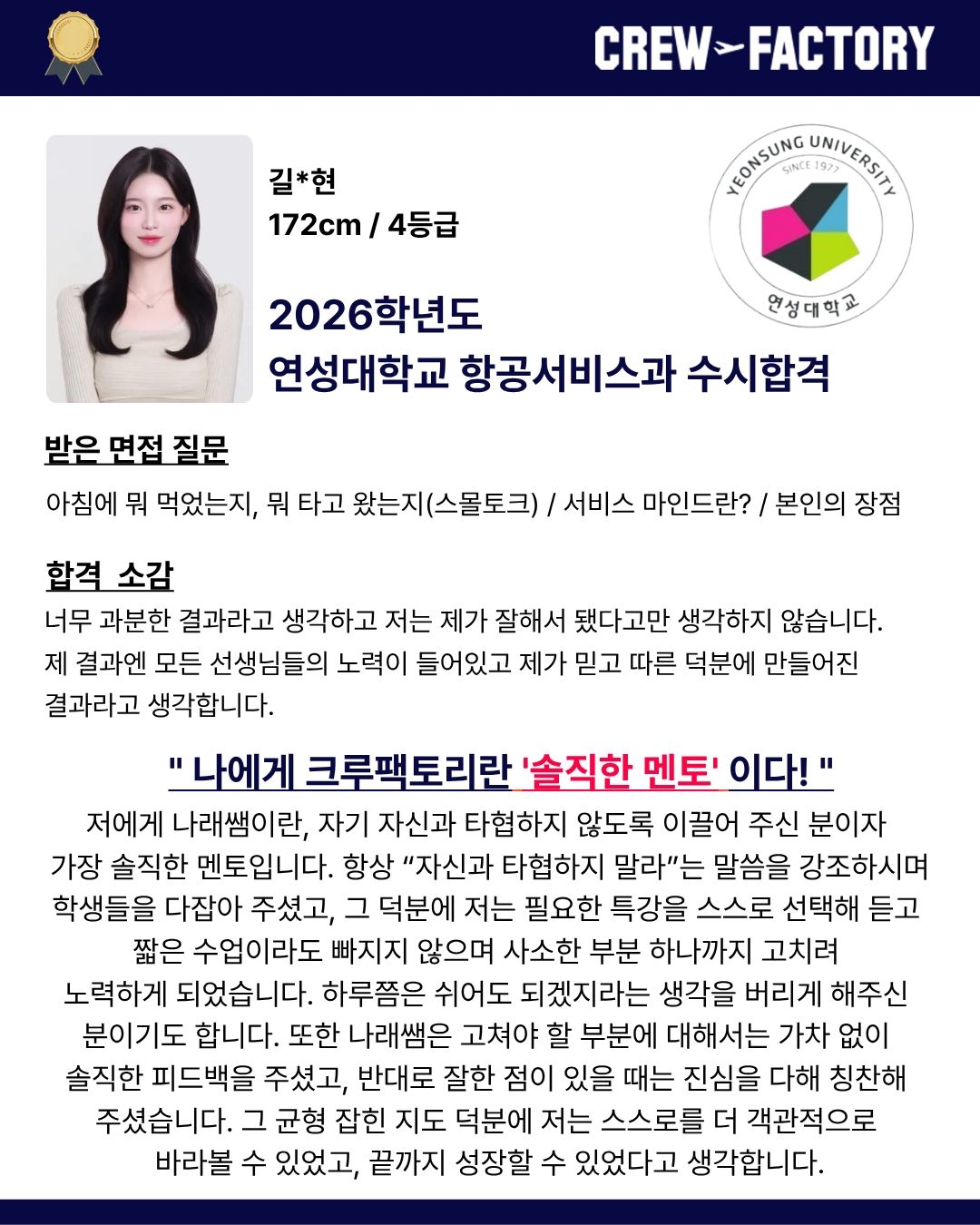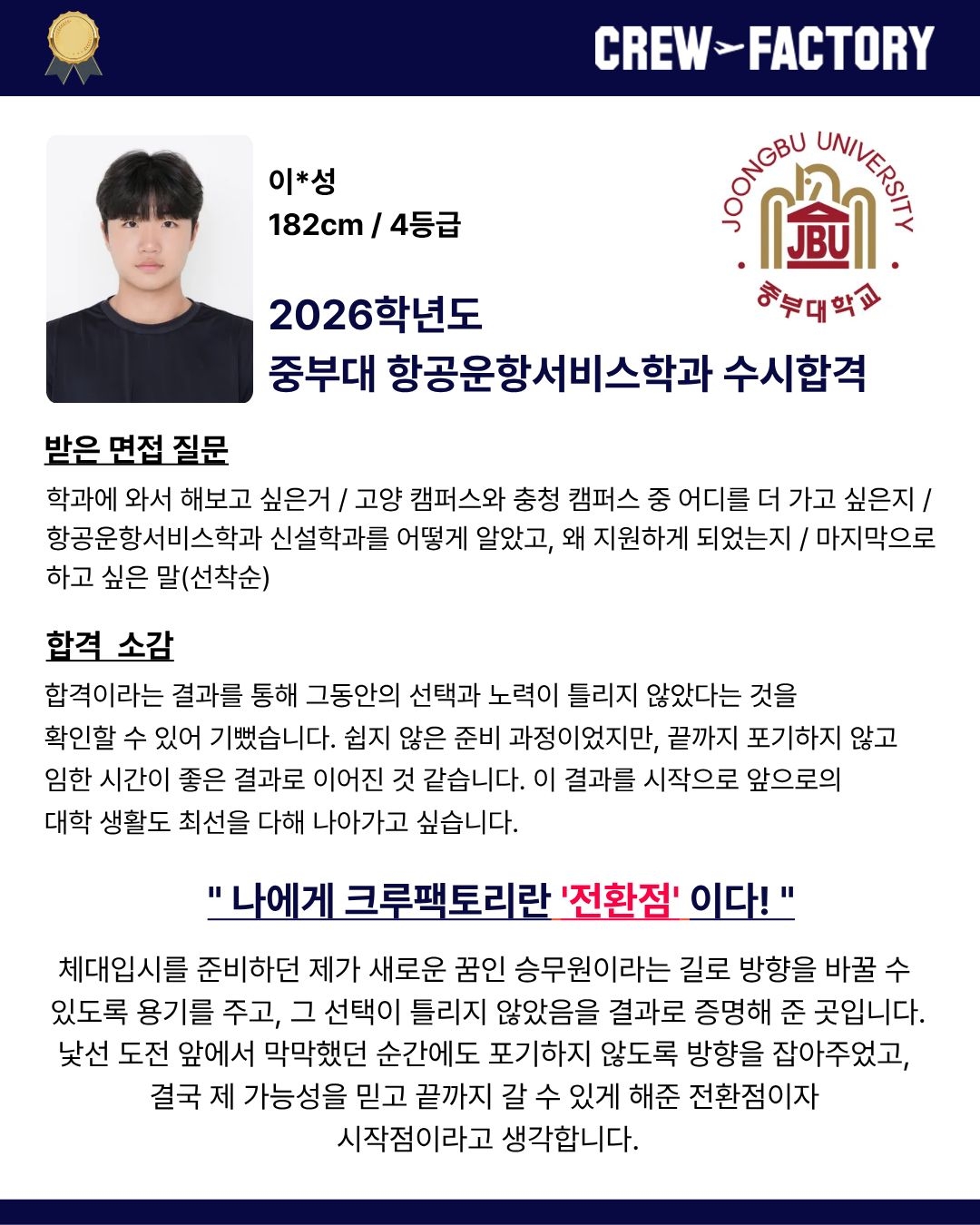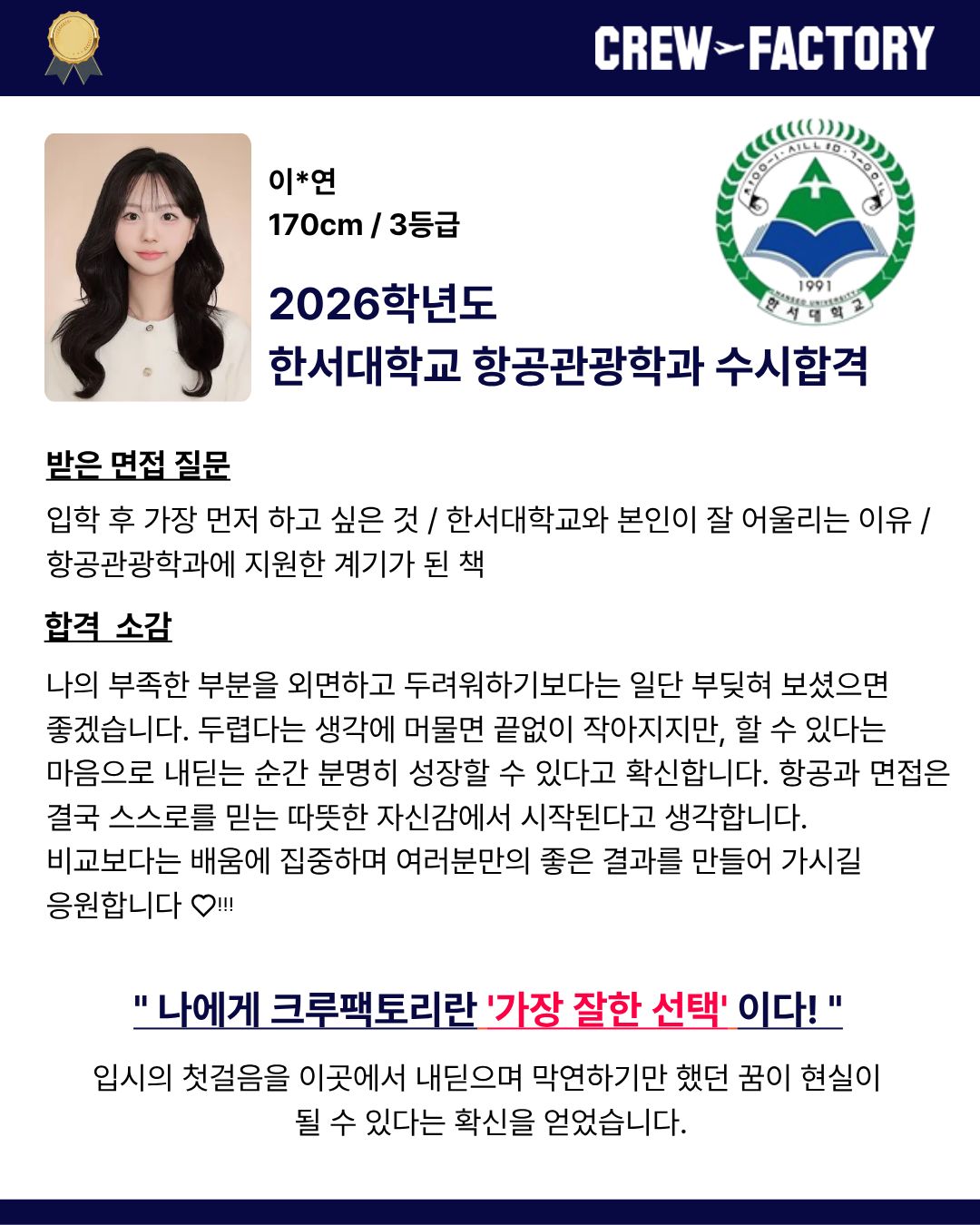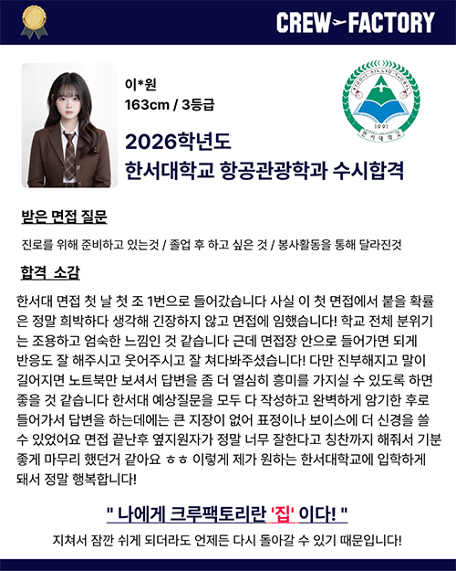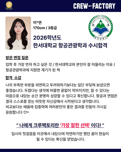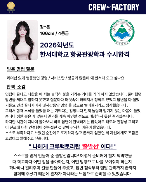 • 한서대학교 항공관광학과 졸업 / 면접관