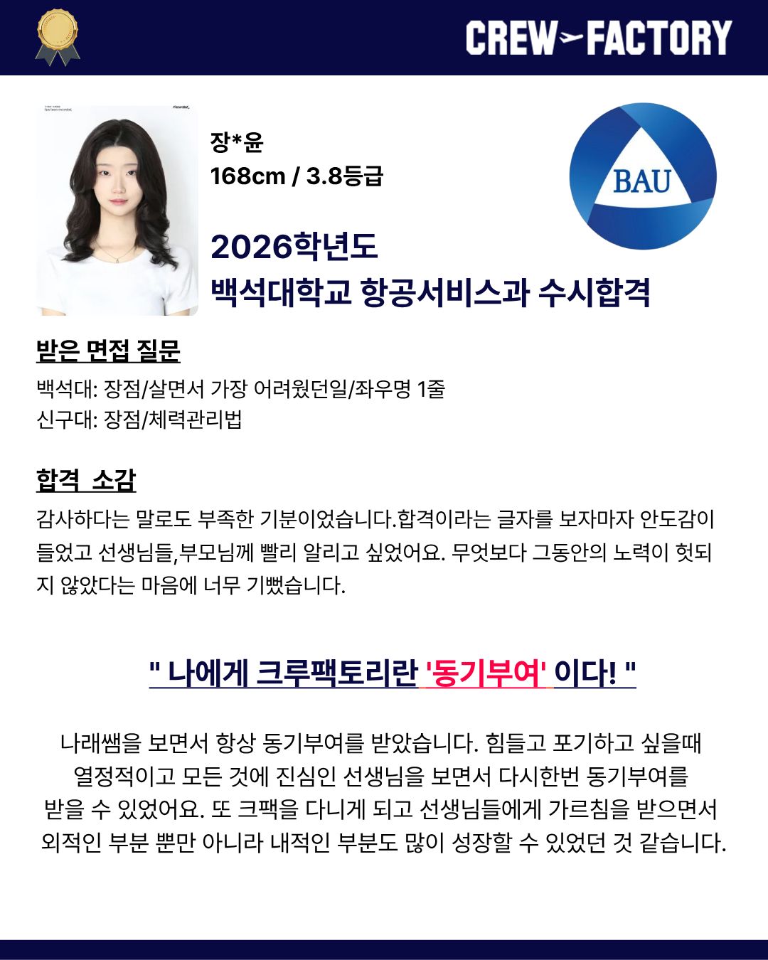 친구추천으로 첫 상담때 항공과에 가기위해 제가 고쳐야 할 점 먼저 다 말씀해주셔서 믿고 선택하게 되었습니다.