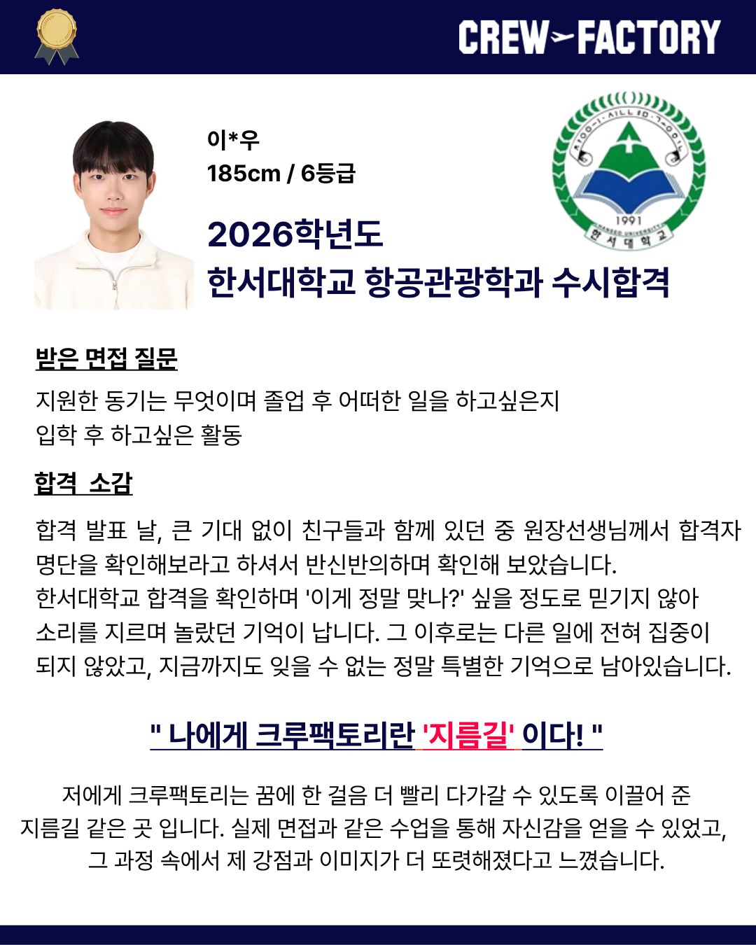 • 한서대학교 항공관광학과 졸업 / 면접관